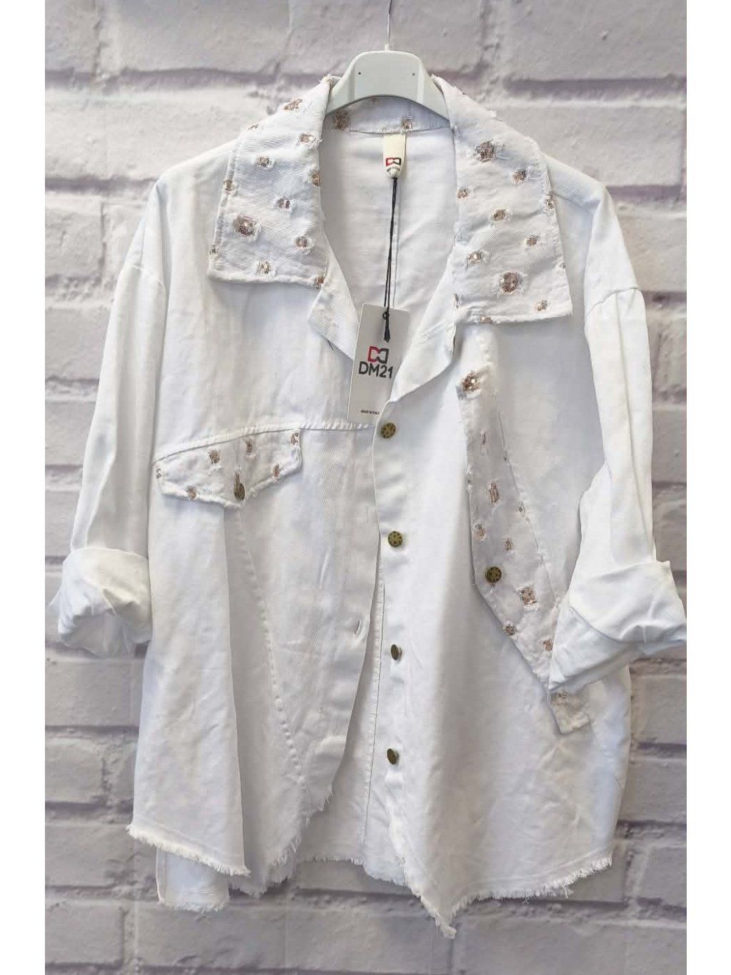 Stylová džínová bunda s výraznými knoflíky a jemným zdobením, která krásně oživí každý outfit. Skvělá na vrstvení přes šaty, tuniku i tričko. Pohodlný střih, který lichotí postavě a dobře sedí i plnějším tvarům.