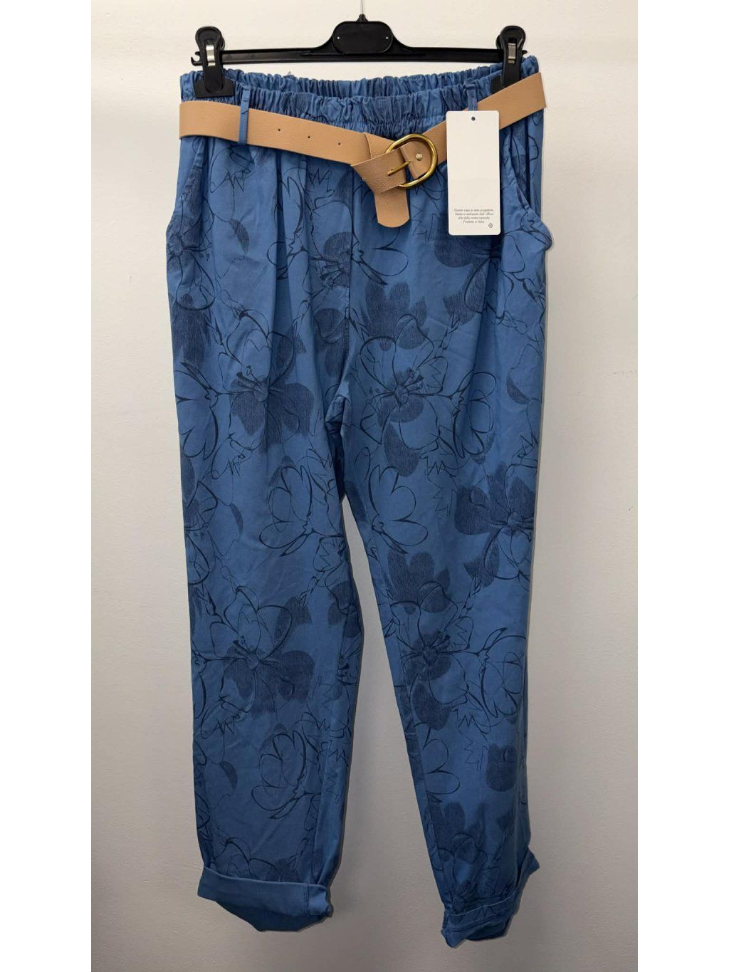 Kalhoty mají pohodlný elastický pas, který se natáhne až do 150 cm, a zároveň krásně drží. Volnější střih v oblasti boků zajišťuje komfort i pro plnější tvary. Moderní jemný vzor dodává kalhotám šmrnc a snadno je sladíte jak s tričkem, tak elegantnější halenkou.